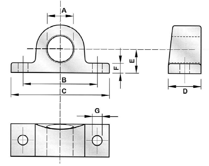 Lejestøtte til hydraulisk cylinder,længde 140 mm, bredde 45 mm, centerhøjde 33 mm, huldiameter 40,5 mm (BS0040MA) eller 45,5 mm (BS0045MA), stål med rå finish