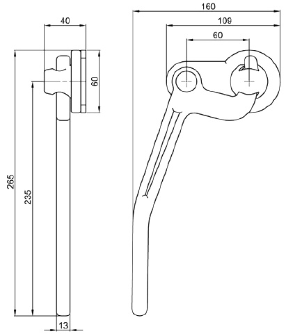 Lastbil sidepanel lås venstre, med holder, total længde 265 mm, stål med rå finish
