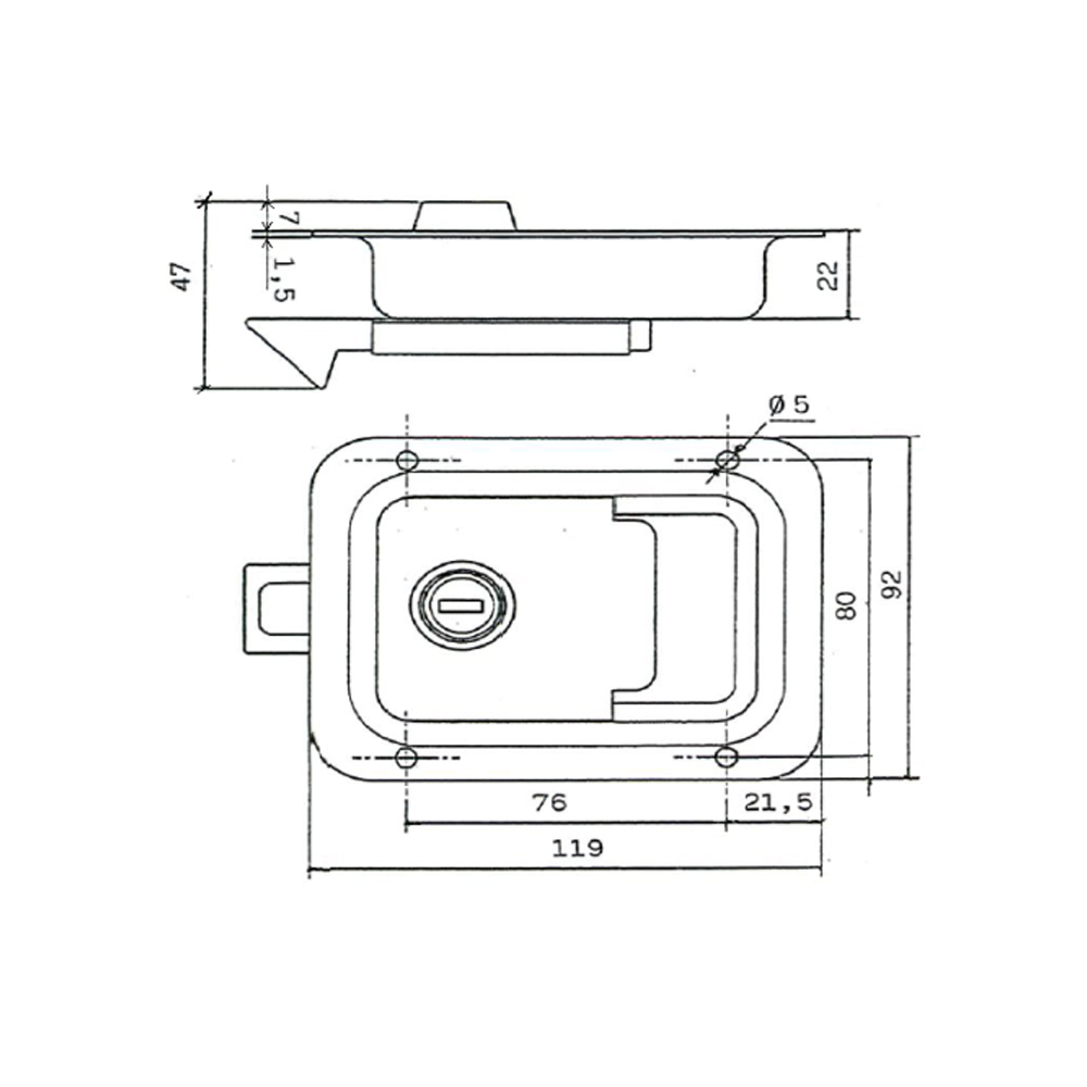 SSerrure à palette en acier inoxydable 119*92, plateau de verrouillage en acier inoxydable 304 poli avec languette de verrouillage en alliage de zinc