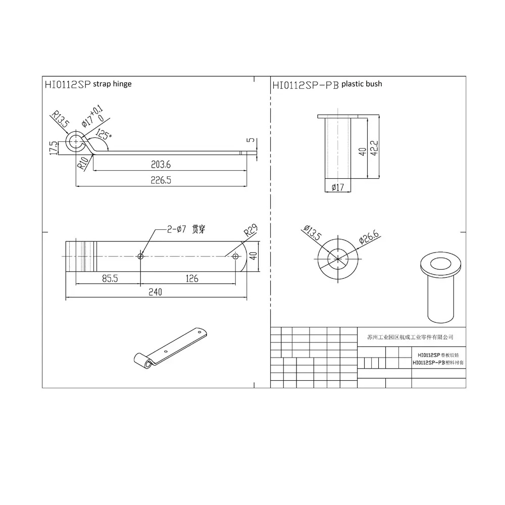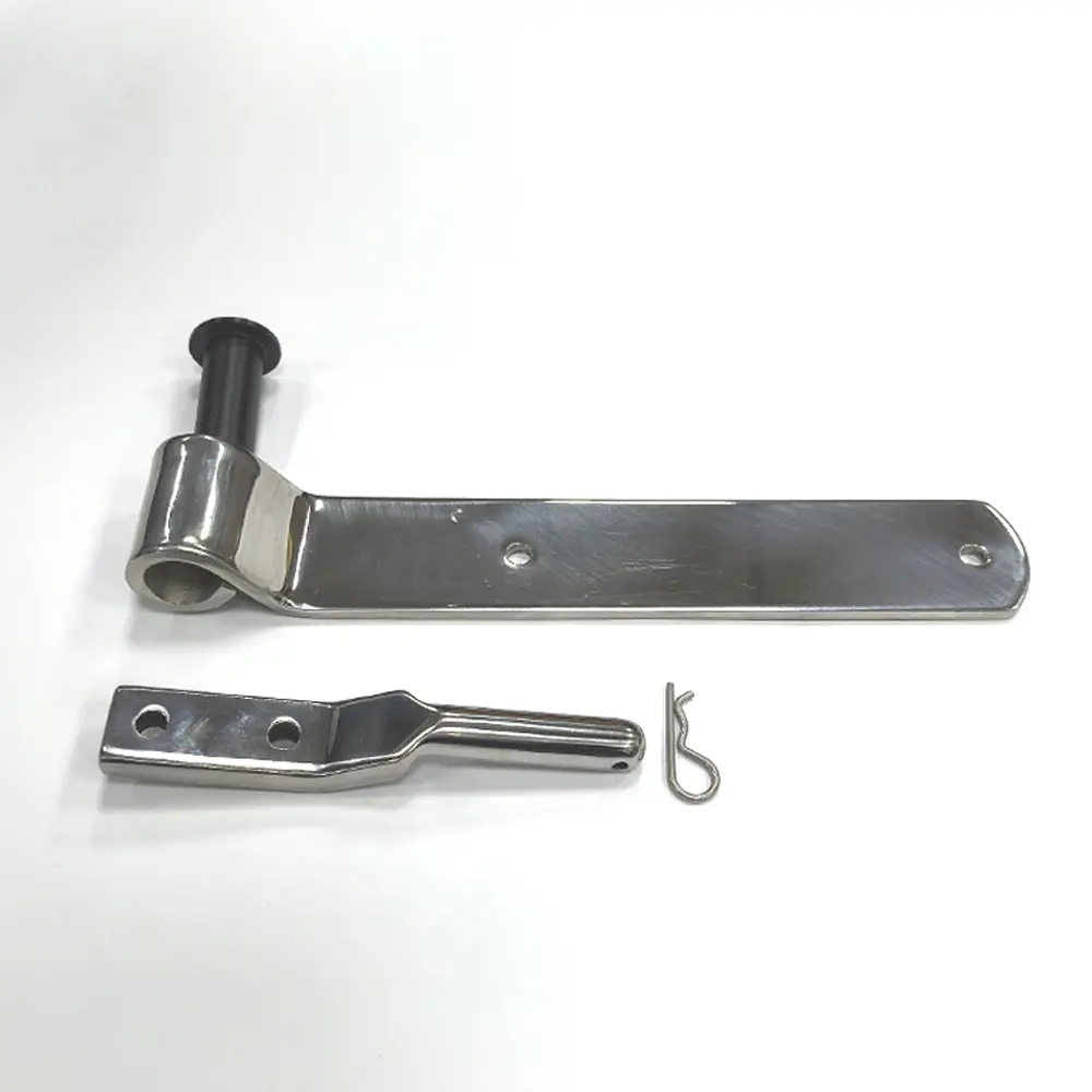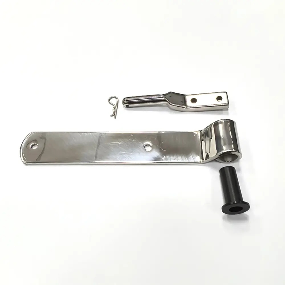 Kit de charnière de sangle en acier inoxydable 304, 2 trous, 240 mm de long, poli, avec une buisson en plastique et un clip.