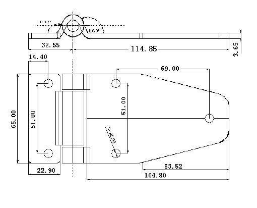 Charnière plate fourgon avec bec à graisse, longueur 149 mm, largeur 65 mm, 5 trous, acier zingué ou inox 304 poli