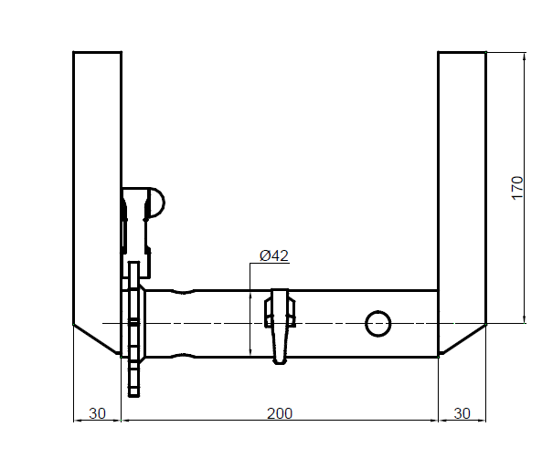 Winch with diameter 42mm lashing drum, with brackets 170mm high, steel with raw finish