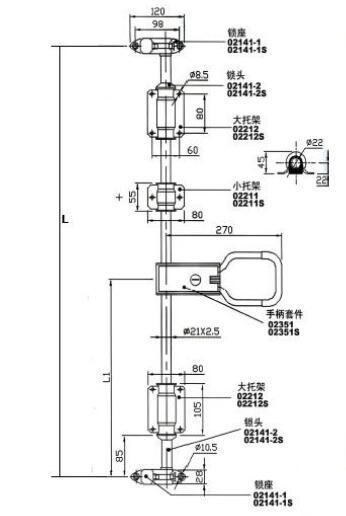 Teherautó ajtózár 270 mm-es zárdobozzal OD22 mm-es csőhöz, horganyzott acél vagy polírozott rozsdamentes acél 304, 3 csőtartóval, 2 nagy és 1 kicsivel