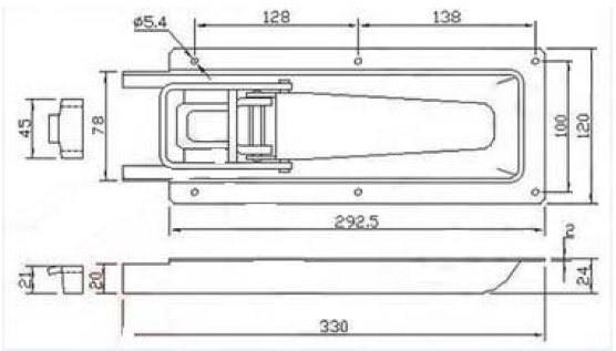 Süllyesztett reteszzár, 330mm hosszú, horganyzott acél
