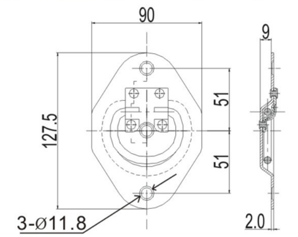 Cincin pengikat tersembunyi dengan 3 lubang, panjang 127,5 mm dan lebar 90 mm, baja berlapis seng