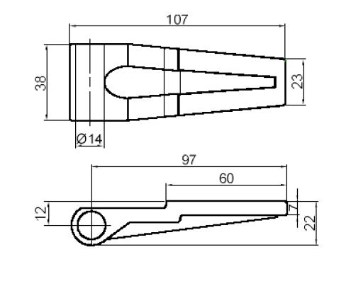 Miðlungsskenkahjör, þvermál 14mm,stál meðhrár frágangur