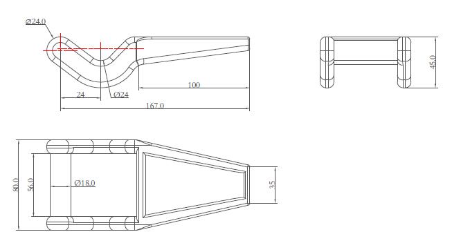 Credenza cerniera doppia apertura, diametro 18mm, lunghezza 167mm, in acciaio con finitura grezza