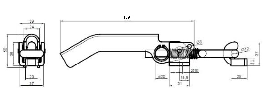 Justerbart spärrlås med fjäder, förzinkat stål eller råstål