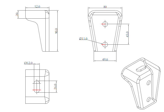 Påbyggnadsfäste för lätt lastbil, höjd 90 mm, förzinkat stål (AN0001MP) eller stål med rå finish (AN0002MP)