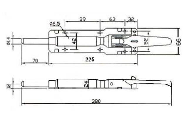 Spärrlås med stång, 380mm långt, förzinkat stål