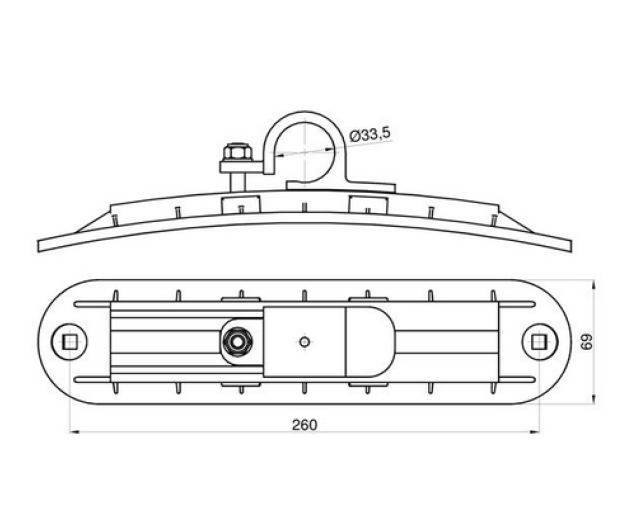 Truck mudguard mounting bracket, diameter ng butas para sa pipe 33.5mm,lapad 69mm, mounting holedistansya 260mm, PVC na itim