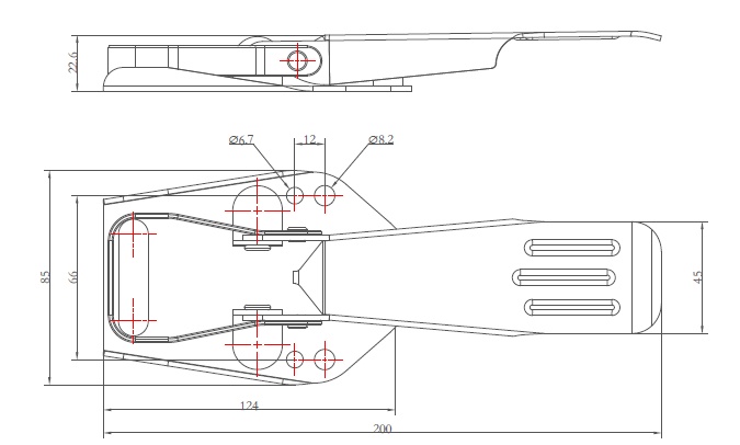 Latch lock, 200mm ang haba, zinc-plated na bakal