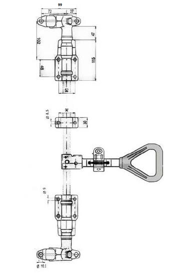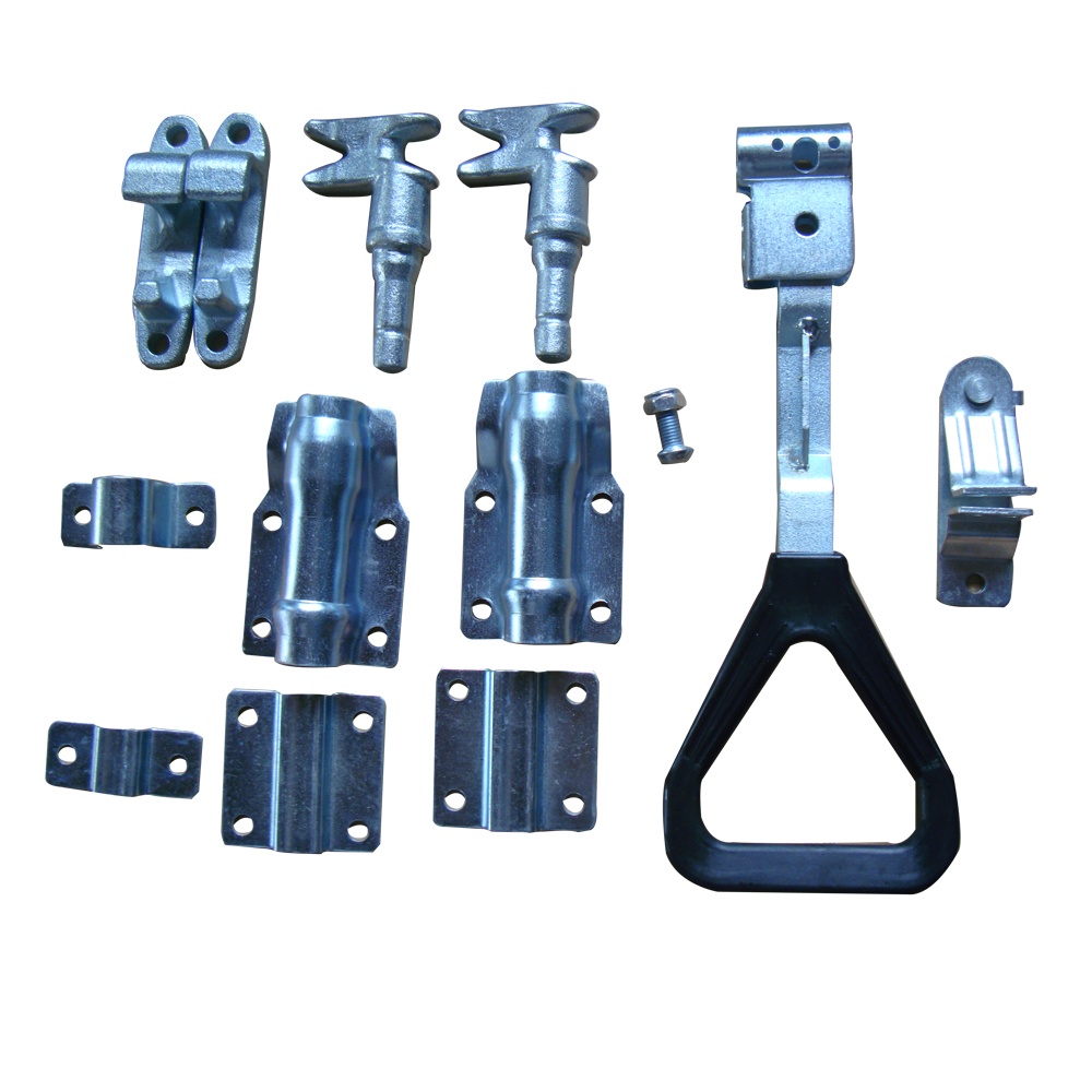 OD22mm boru için kamyon kapı kilidi, çinko kaplama çelik, üçgen saplı, 3 boru braketi, 2 büyük ve 1 küçük