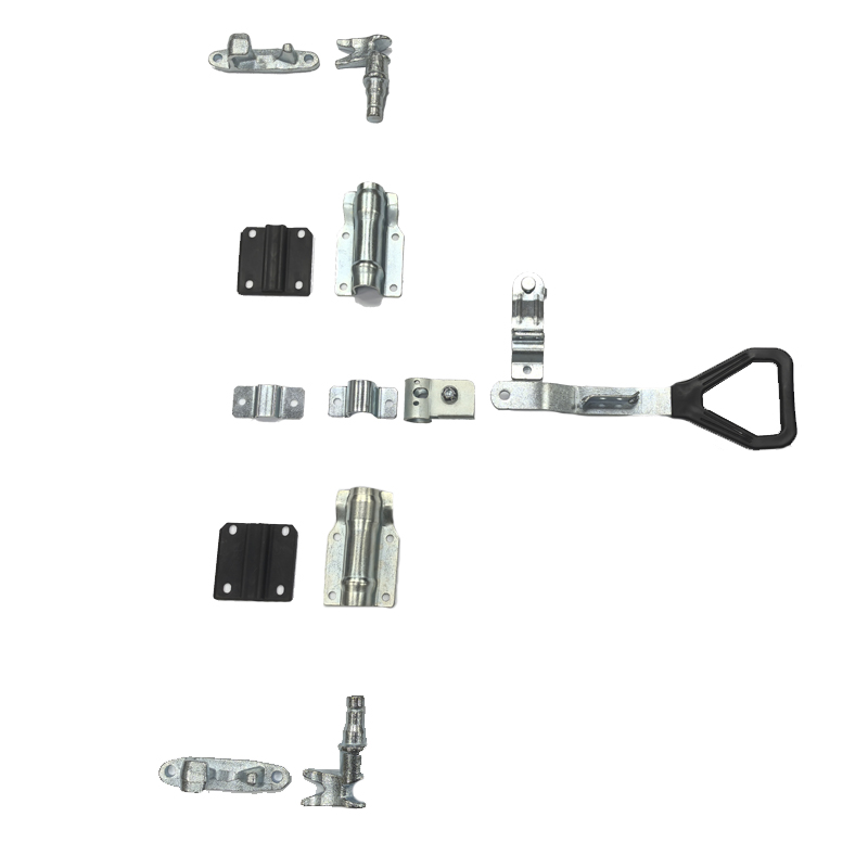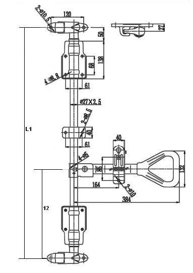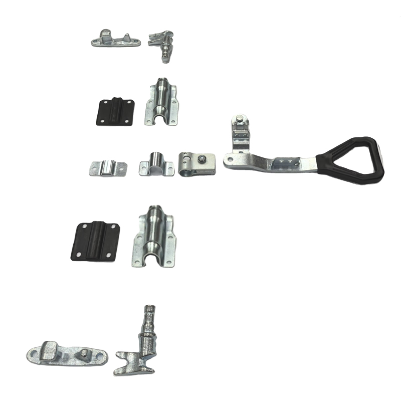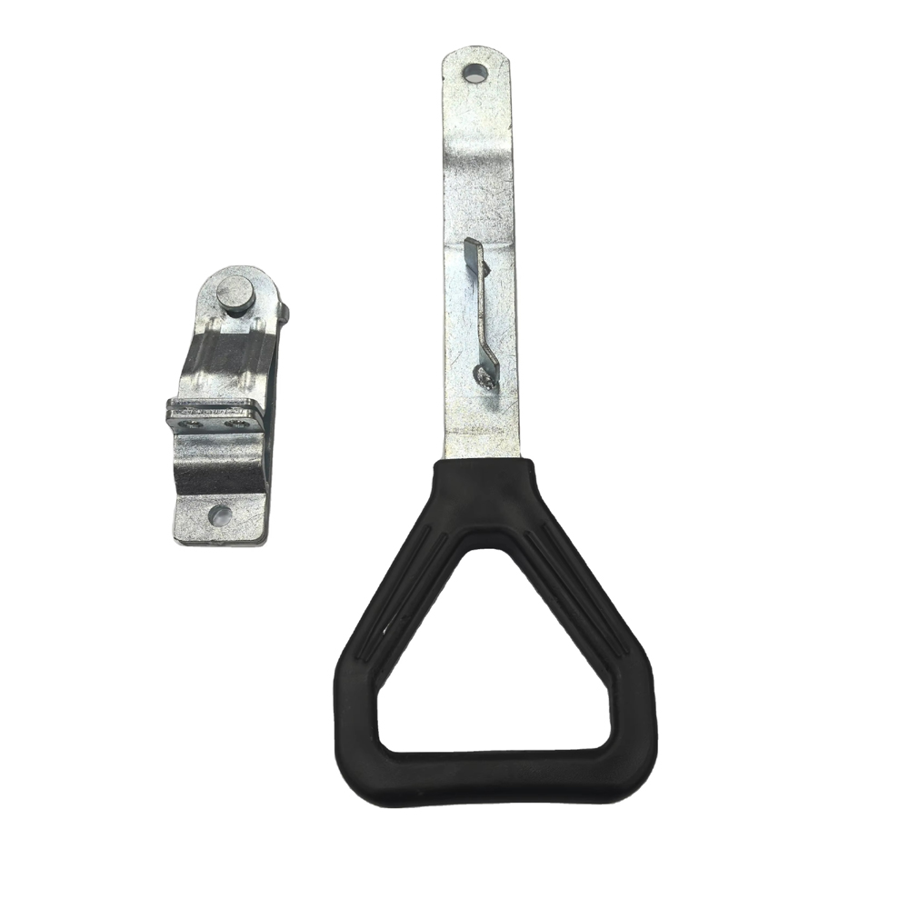 OD27mm boru için kamyon kapı kilidi, çinko kaplama çelik, üçgen saplı, 3 boru braketi, 2 büyük ve 1 küçük
